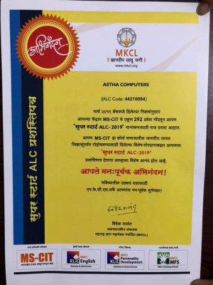 Prashik Gajbhiye2023-09-17Hi, I am Prashik Shashikat Gajbhiye I did an MSCIT course at Astha Computer Institute.I liked it very much here, I am happy that I chose Astha Computer Institute because I do not teach well in other institutes, I went and saw for myself that I liked the staff here. Friendly and computer is very cool. Lab, Class Room, sitting position I liked that very much. You teach very well here, my experience was very good, I am very happy, if you also want this experience, then you also go. ASTHA INSTITUTE IN TUMSAR Thank you...........